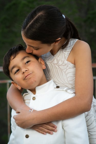 Durante la sesión realizamos una parte centrada en Alejandro, trabajando retratos y fotografías más personales, y otra parte junto a sus hermanas y su familia. Aprovechamos el entorno, la luz natural y el paisaje para crear imágenes sencillas, naturales y llenas de cercanía, dejando que los momentos fluyeran sin forzar poses.